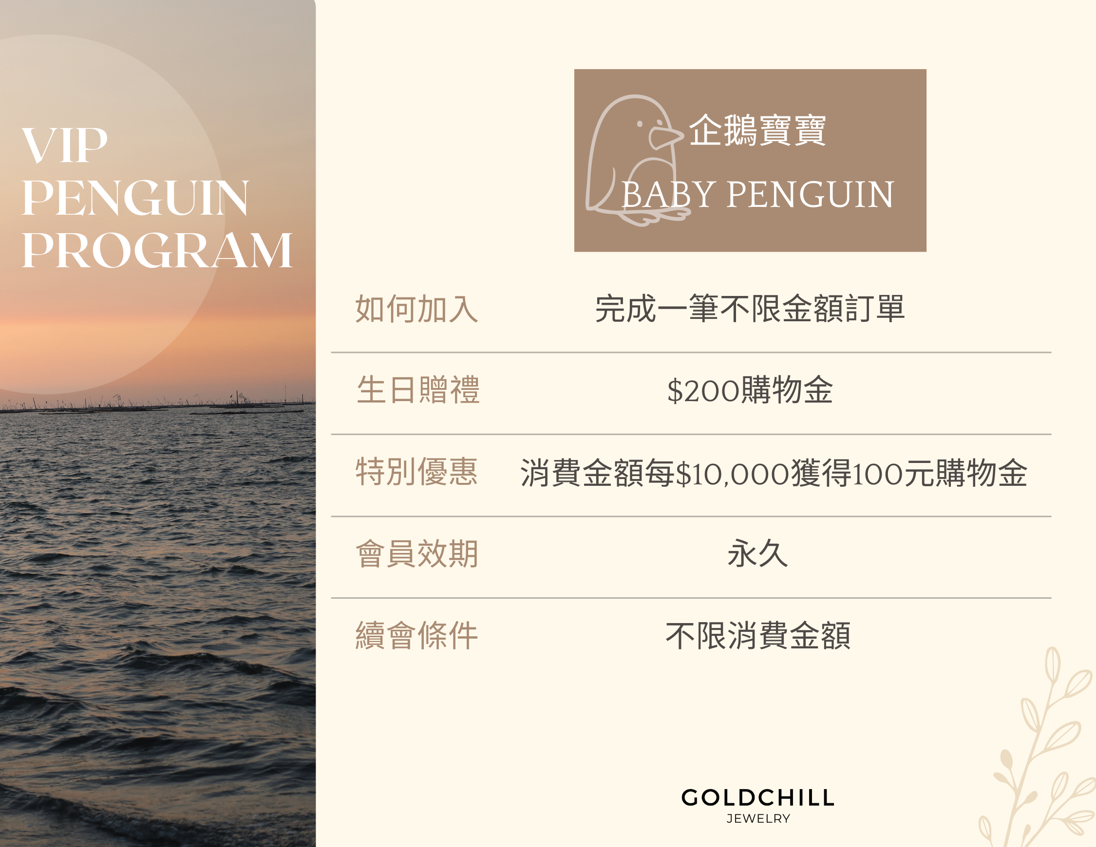 ▪ VIP Penguin Program優惠措施僅限GOLDCHILL官網使用,GOLDCHILL保有對條款及細則最終解釋及修改之權利,而無需另行通知。如您對VIP Penguin Program有任何疑問,歡迎聯絡客服人員洽詢。